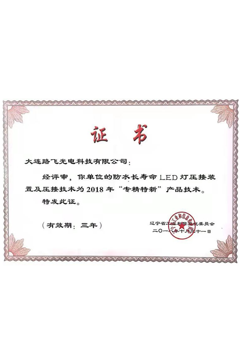 • 大連路飛光電科技有限公司專精特新證書